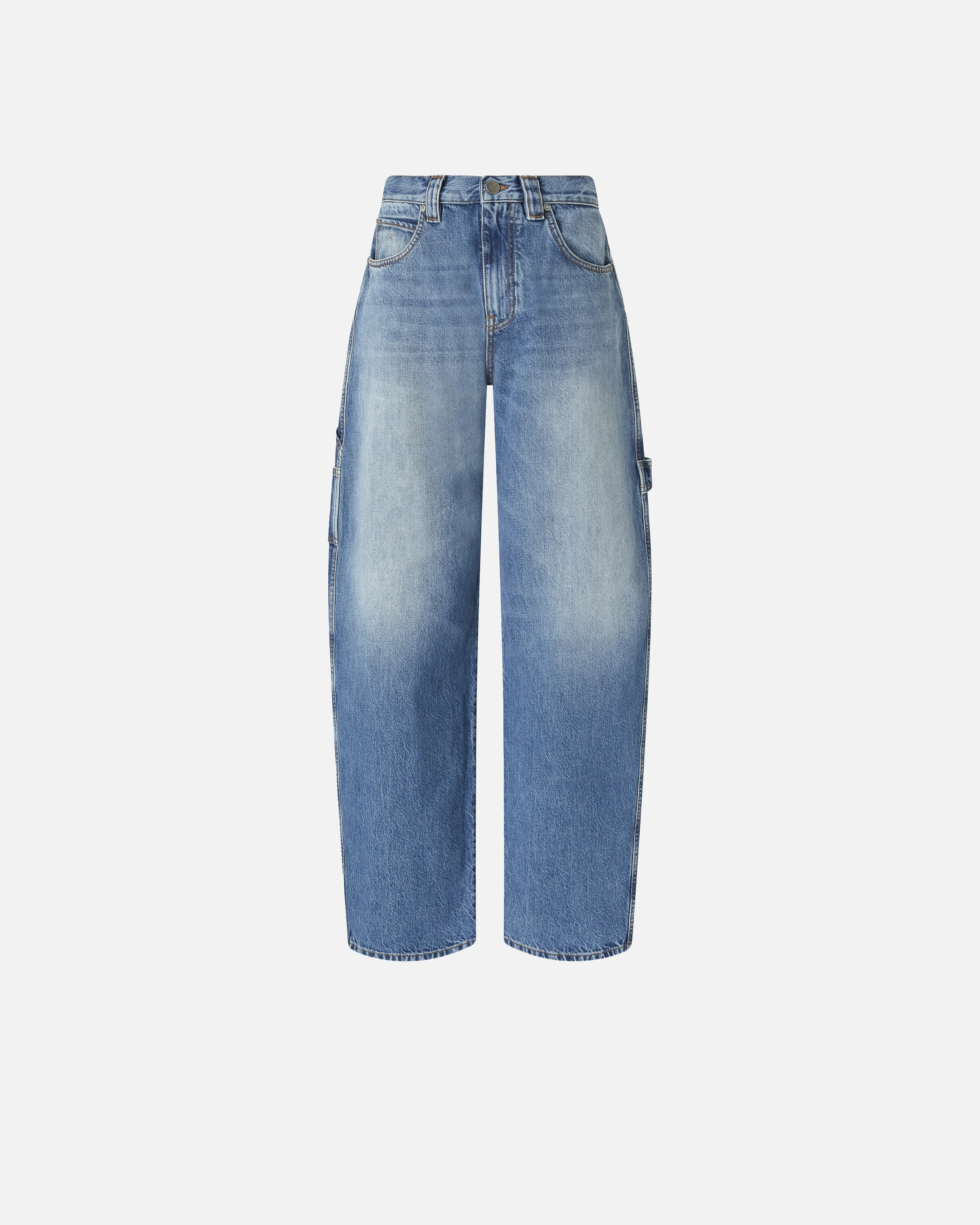 ELOISETTE EGG − 105542A2RPPJD Balloon-fit jeans with a soft balloon leg that is rounded at the top and more cinched on the hem. This style is made from blue cotton denim and is treated with special techniques to obtain a vintage effect and to create eye-catching colour contrasts. The brand's lettering logo embroidered on the back of the waistband and the Love Birds logo with embroidered birds on the right back pocket and rivet with Love Birds logo on the coin pocket add pure PINKO style to the design. Complete your wardrobe with these workwear-inspired five-pocket jeans, finished with a double pocket on one pocket and strap on the back of the other. Regular-waisted model with belt loops, a zip fastening and a metal tack button. COMPOSITION Outside Fabric: COTTON 100% - Lining: POLYESTER 65% COTTON 35%