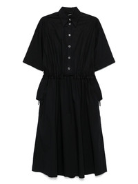 cotton midi dress Highlights - Black - Front button fastening - Elasticated drawstring waistband - Drop shoulder - Short sleeves Imported Composition Cotton 100% SIZE & FIT Model measurements Height 5 ft 10 in(1.79 m) Bust/Chest 33.07 in(84 cm) Hips 35.82 in(91 cm) Waist 24.01 in(61 cm) FittingInformation Designed for a relaxed fit, this piece allows for comfort and movement when worn The elasticated waist allows for a comfortable fit Made from a midweight non-stretch fabric Washing instructions Machine Wash