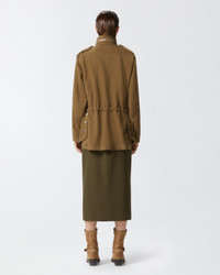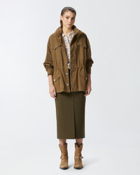 DIATONIA OVERSHIRT − 103921A22PX24 Garment-dyed cotton shacket with classic parka-inspired silhouette. High collar with technical fabric hood concealed in a special zipped compartment. The design includes utility-style details: epaulettes, cuff tabs, breast pockets and side pockets with a pointed flap and buttons on the back. The elastic waistband gathers the fabric slightly, creating a cinched-waist effect. Concealed button fastening. COMPOSITION 1° Outside Fabric: COTTON 100% - 2° Outside Fabric: POLYAMMIDE 100% POLYAMIDE 100% - Lining: COTTON 100%
