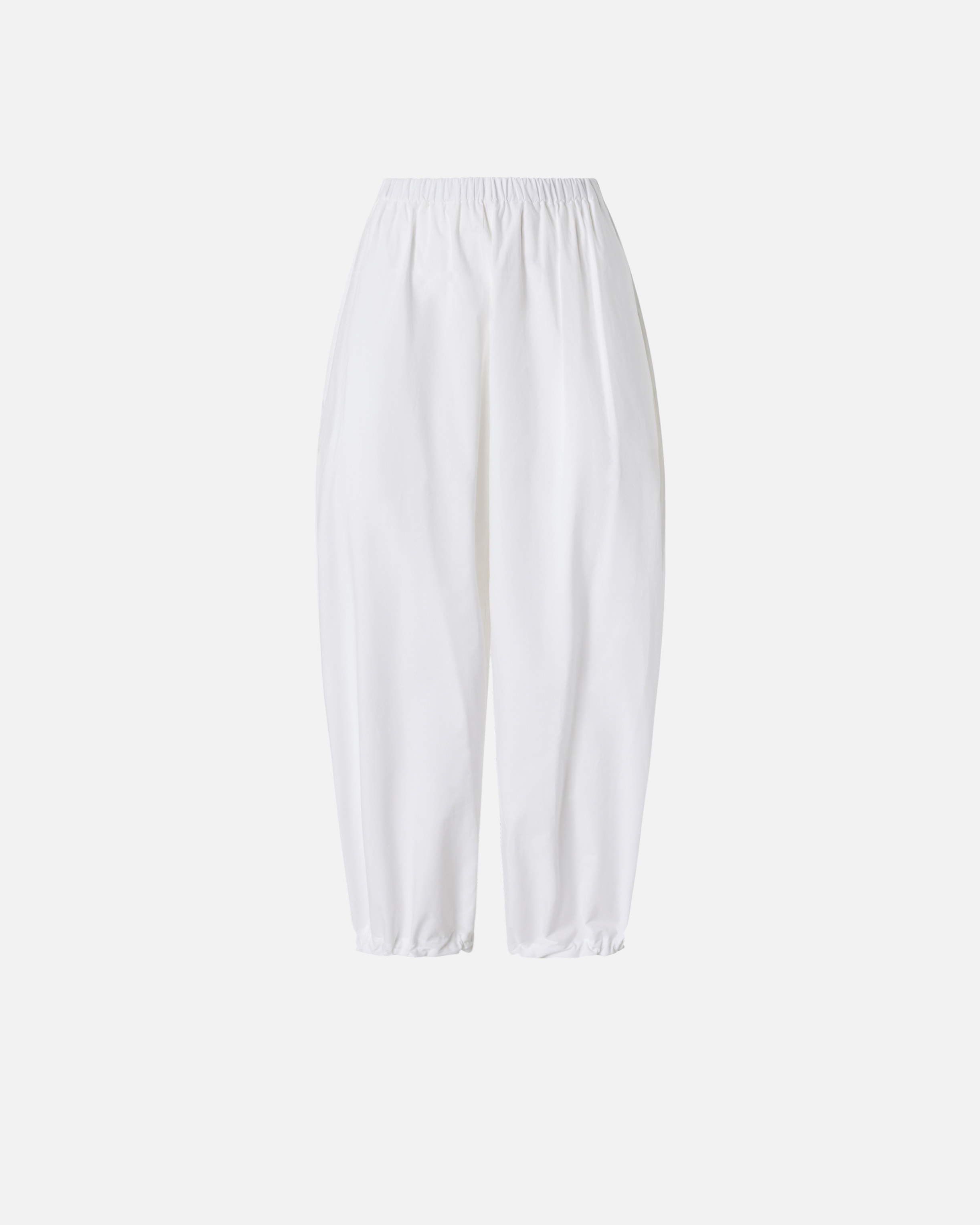 ROGER TROUSERS − 105210A2LDZ04 Women's long trousers in light cotton poplin characterized by a loose fit, with a balloon leg that is very rounded, with a drawstring inserted at the bottom of the garment to tighten the volume, customizing the scope of the garment and allowing you to have two different leg silhouettes. Elastic inserted at the waist and pockets on the sides for greater comfort. Lightweight and versatile, poplin balloon trousers are ideal both for special occasions and for an everyday look, if you are looking for a dynamic and particular touch. COMPOSITION Outside Fabric: COTTON 100% - Lining: COTTON 100%