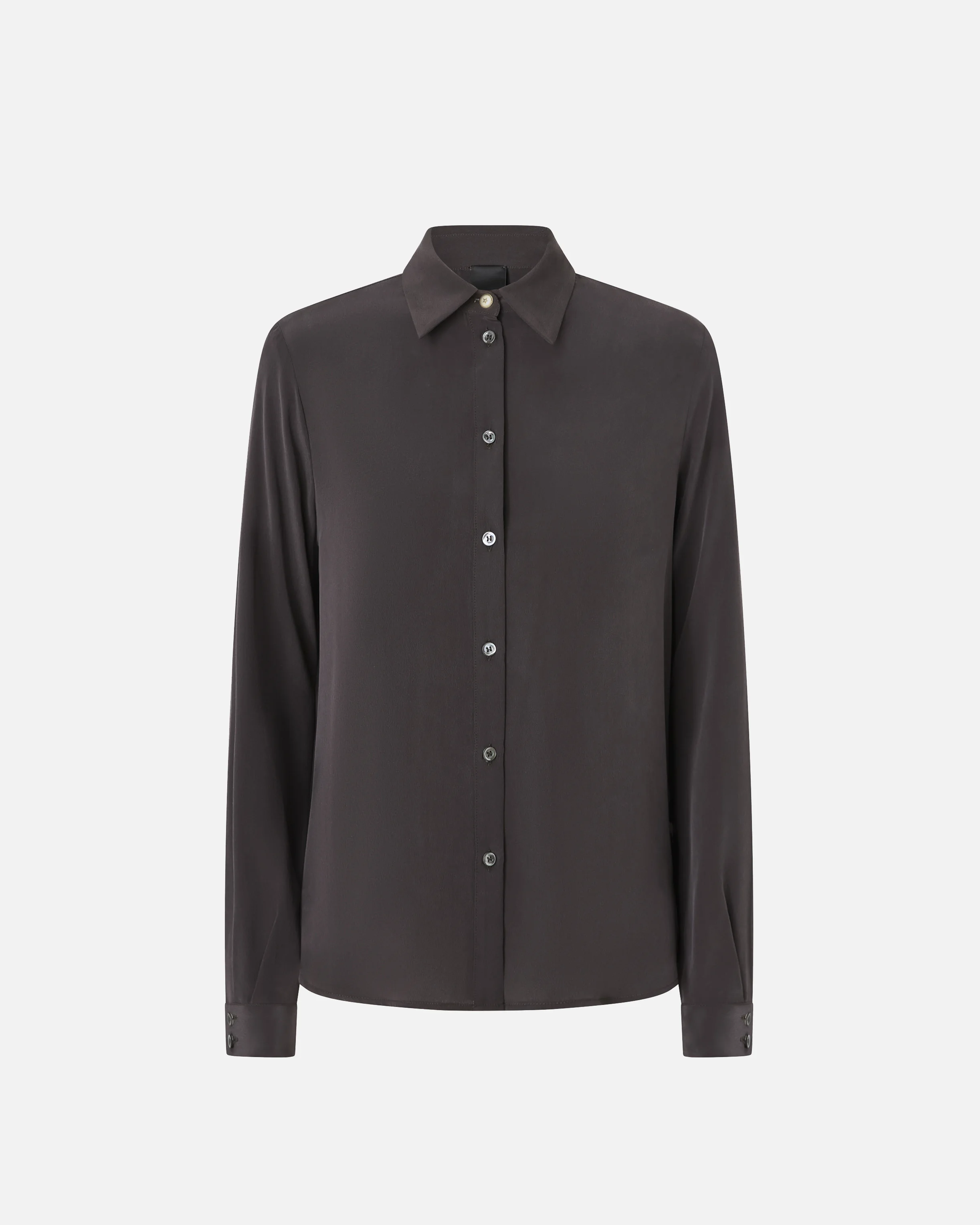 null − 105593A2T7M04 Classic shirt with small collar, long sleeves completed by buttoned cuffs and a refined rear yoke with inverted pleat. The garment is made from pure silk crepe de Chine with a sand wash treatment, which attenuates the lustre of the fabric, giving it a slightly worn look. The first button of the fastening is made from metal and is decorated with a star. Pair this shirt with jeans to give your everyday look a feminine and original upgrade that won't go unnoticed. COMPOSITION Outside Fabric: SILK 100% - Lining: SILK 100%