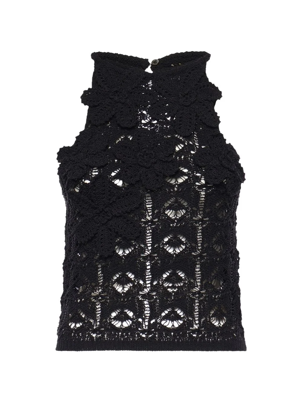 crochet tank top Highlights - Black - Crochet knit - Keyhole detail Imported Composition Polyester 75%, Cotton 65%, Polyimide 35%, Spandex/Elastane 25% Washing instructions Read Manufacturer Guidelines
