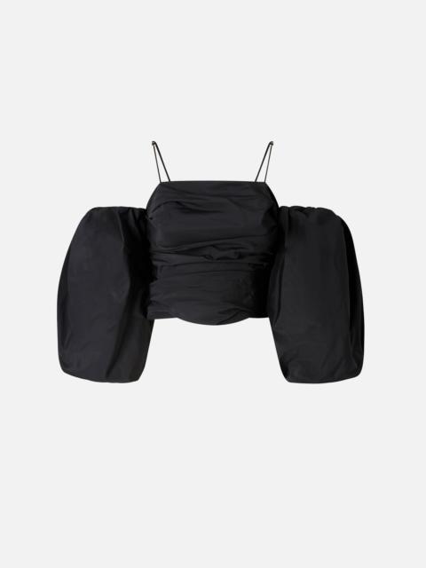PALLOTTOLIERE TOP − 105552Y3LEG41 Taffeta crop top with slim shoulder straps and detachable sleeves, offering different styling options. The material is light and shiny and blends perfectly with the dynamic-volume design that distinguishes the garment. The meticulous cuts and modern lines of the design are embellished by distinctive elements, such as the seductive bustier details on the back and the puff sleeves. It creates an outfit with a dramatic and striking effect, which is also accentuated by the slightly gathered fabric of this distinctive top. COMPOSITION Outside Fabric: POLYESTER 100% - Body lining: POLYESTER 90% ELASTANE 10% - Sleeve lining: POLYESTER 100%