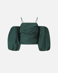 PALLOTTOLIERE TOP − 105552Y3LEV88 Taffeta crop top with slim shoulder straps and detachable sleeves, offering different styling options. The material is light and shiny and blends perfectly with the dynamic-volume design that distinguishes the garment. The meticulous cuts and modern lines of the design are embellished by distinctive elements, such as the seductive bustier details on the back and the puff sleeves. It creates an outfit with a dramatic and striking effect, which is also accentuated by the slightly gathered fabric of this distinctive top. COMPOSITION Outside Fabric: POLYESTER 100% - Body lining: POLYESTER 90% ELASTANE 10% - Sleeve lining: POLYESTER 100%