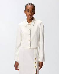 GUAZZETTO JACKET − 105784A24CZ05 Short jacket with a straight hem and classic shirt collar made from full Milano-knit technical fabric. This style comes in a slim fit and features a design with long sleeves and no pockets for a minimalist style that has not sacrificed feminine details. This piece is the perfect solution when you are searching for a refined and effortless look, with an extra elegant touch. COMPOSITION Outside Fabric: VISCOSE 67% POLYAMMIDE 28% POLYAMIDE 28% ELASTANE 5% - Lining: ACETATE 67% POLYESTER 33%