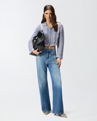 106858A3BA-Y80 Cropped-cut cardigan made of pure cotton yarn with a mix of chunky knit and braiding on the main body, and finer ribbing on the pointed collar and hem. The garment dyeing of the fabric creates unique irregular colour shades for each model, giving it a vintage look, while the buttons on the front fastening are decorated with a refined engraved geometric motif. The final touch is given by the label with jacquard PINKO logo lettering on the back. COMPOSITION Outer Yarn: COTTON 100% MEASURES W: 0.62 g