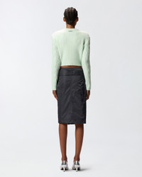 DIXIE GIRL CARDIGAN − 106065A2YSE19 Cropped crew-neck cardigan with chunky-knit woven detailing on the front and long sleeves that's striking, ultra-lightweight and very pleasant to the touch. This piece is enhanced by large jewel buttons down the front placket and customised with a rear label featuring the PINKO logo lettering. The piece has undergone finishing tests to minimise the possible formation of pilling, ensuring greater fabric softness and durability. COMPOSITION Outer Yarn: ACRYLIC 60% POLYAMIDE 14% POLYAMMIDE 14% POLYESTER 10% VISCOSE 8% WOOL 8%