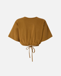 106907A3AR-L25 Cropped short-sleeved T-shirt made from pure cotton double jersey with a soft and compact feel. This style features an elasticated hem with a lace to wrap around the waist and tie as you wish, embellished with micro studs and Texan-inspired loop buckles with an aged silver finish. Wear the T-shirt with the matching trousers for a summer look that leaves nothing to chance. COMPOSITION Outside Fabric: COTTON 100%