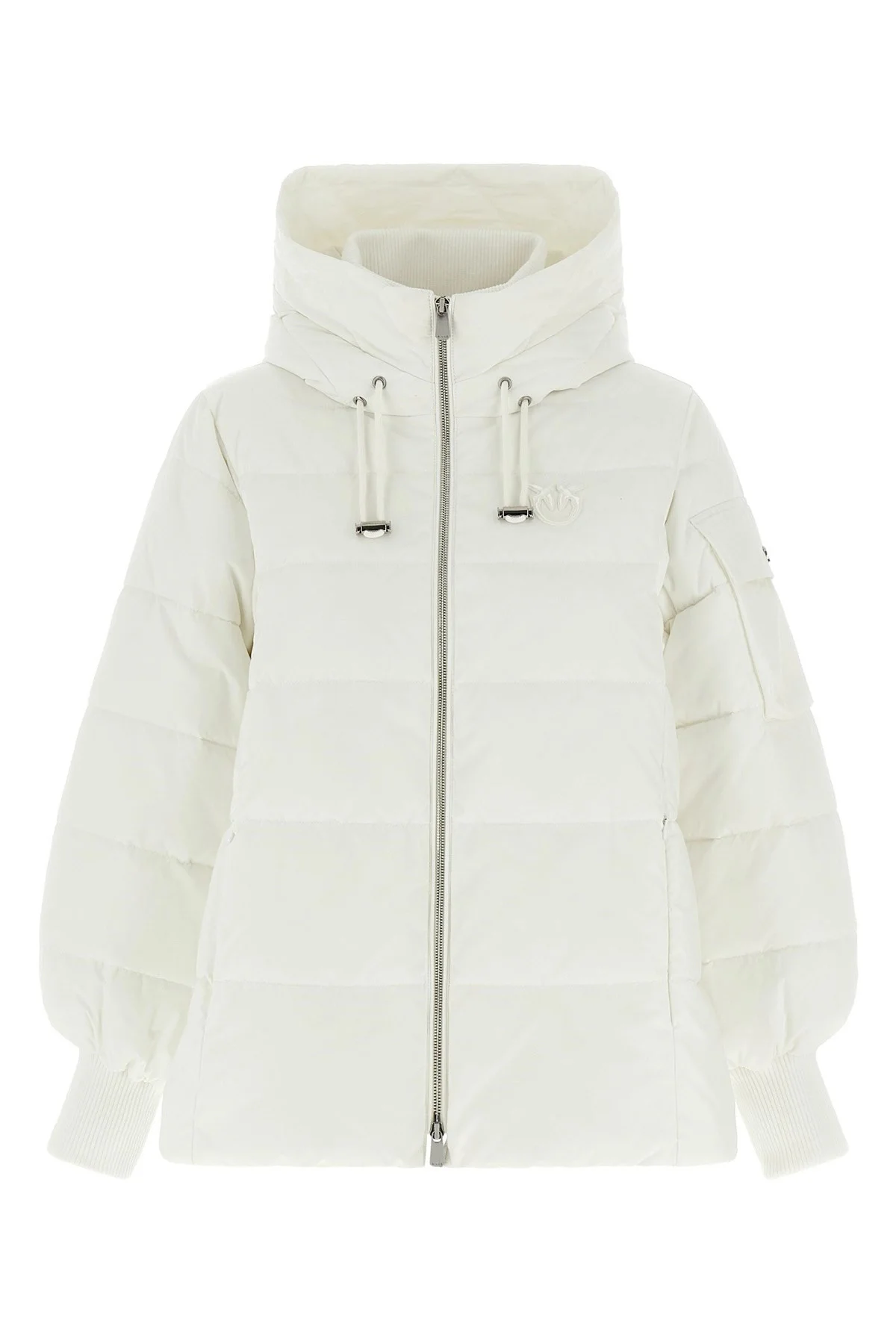 cod. 105384A2PEZ05 'Crusca' quilted and padded technical canvas down jacket with slightly bell-shaped silhouette, adjustable hood with visor, stretch ribbed knit high neck, rubberized 'Love Birds' logo patch and front zip closure, long cuffed sleeves, drawstring at the hem. Color: White Size & Fit: true to size fit Composition: 100% polyester Made in: China
