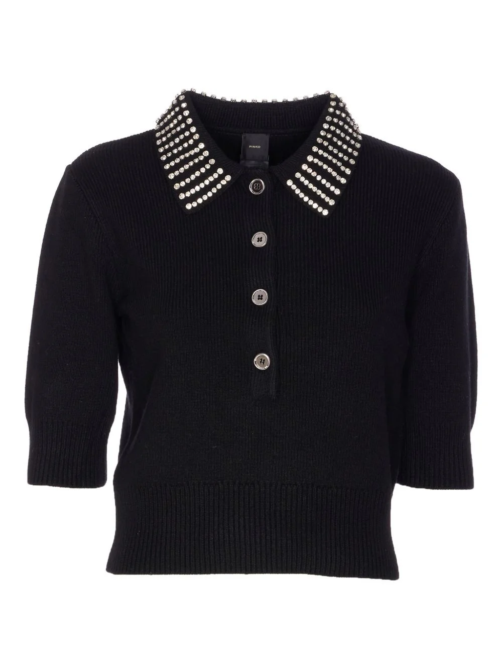 crystal-collar half-zip cropped sweater Highlights - Black - Crystal embellishment collar - Half-zip fastening - Ribbed knit - Short sleeves - Crew neck Imported Composition Nylon 48%, Viscose 27%, Wool 20%, Cashmere 5% Washing instructions Read Manufacturer Guidelines