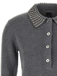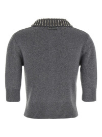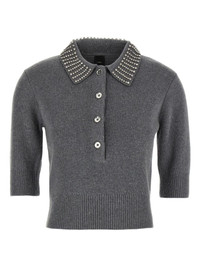 crystal-collar short-sleeve top Highlights - Grey - Crystal collar - Short sleeves - Button front - Ribbed knit Imported Composition Polyamide 48%, Viscose 27%, Cashmere 20%, Wool 5% Washing instructions Read Manufacturer Guidelines