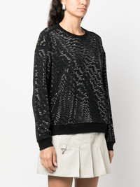 crystal-embellished crew-neck sweatshirt Highlights - Black - Crystal embellishment - Crew neck - Long sleeves - Elasticated cuffs and hem - Straight hem Imported Composition Cotton 100%, glass 100% SIZE & FIT Model measurements Height 5 ft 10 in(1.79 m) Bust/Chest 33.07 in(84 cm) Hips 35.82 in(91 cm) Waist 24.01 in(61 cm) FittingInformation Designed to be unstructured, offering a loose fit throughout Made from a midweight non-stretch fabric, this piece offers minimal elasticity when worn This piece fits true to size – take your usual size Washing instructions Hand Wash