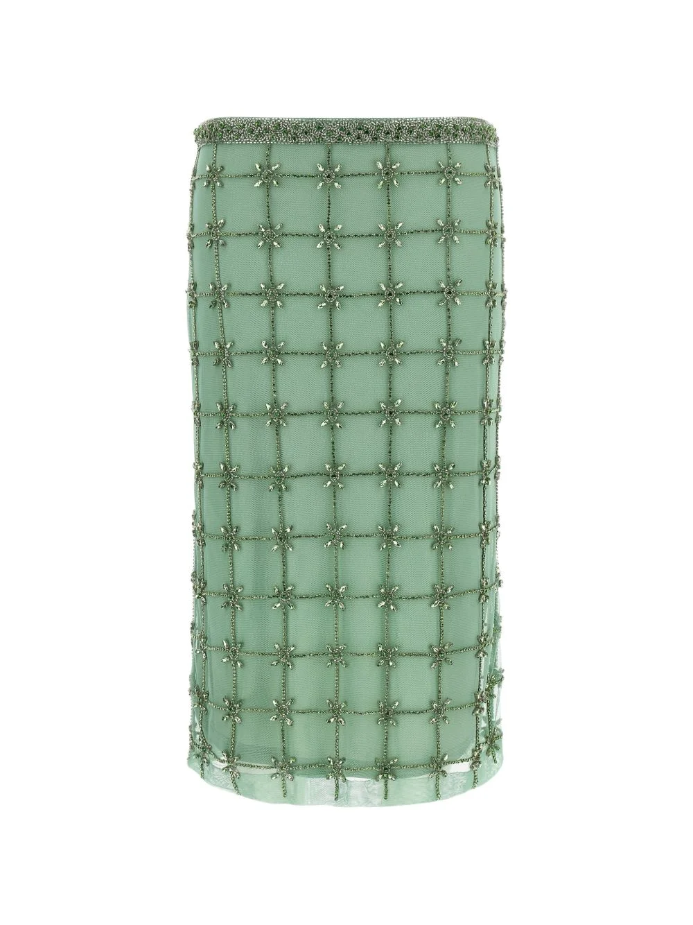 crystal-embellished midi tulle skirt Highlights - Green - Crystal embellishment - Concealed zip fastening - Tulle Imported Composition Polyester 100% Trims: glass 100%, Metal 100%, Acrylic 100% Lining: Polyester 100%