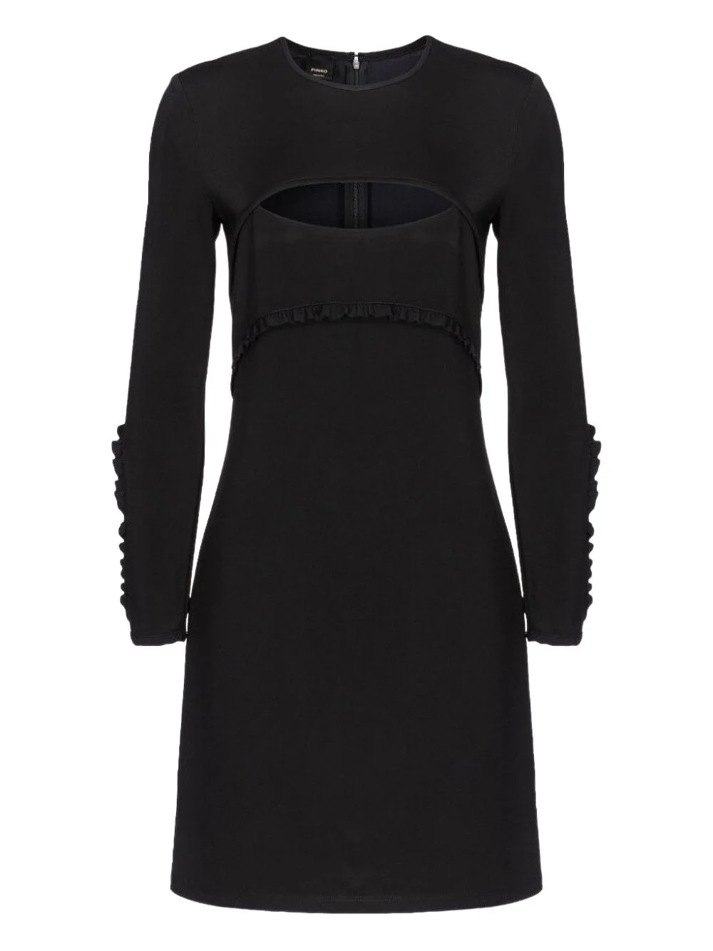 cut-out ruffled mini dress Highlights - Black - Ruffled detail - Cut-out neckline - Long sleeves - Frilled cuffs - Straight hemline Imported Composition Fabric 100% Washing instructions Read Manufacturer Guidelines