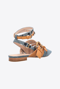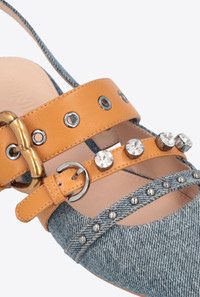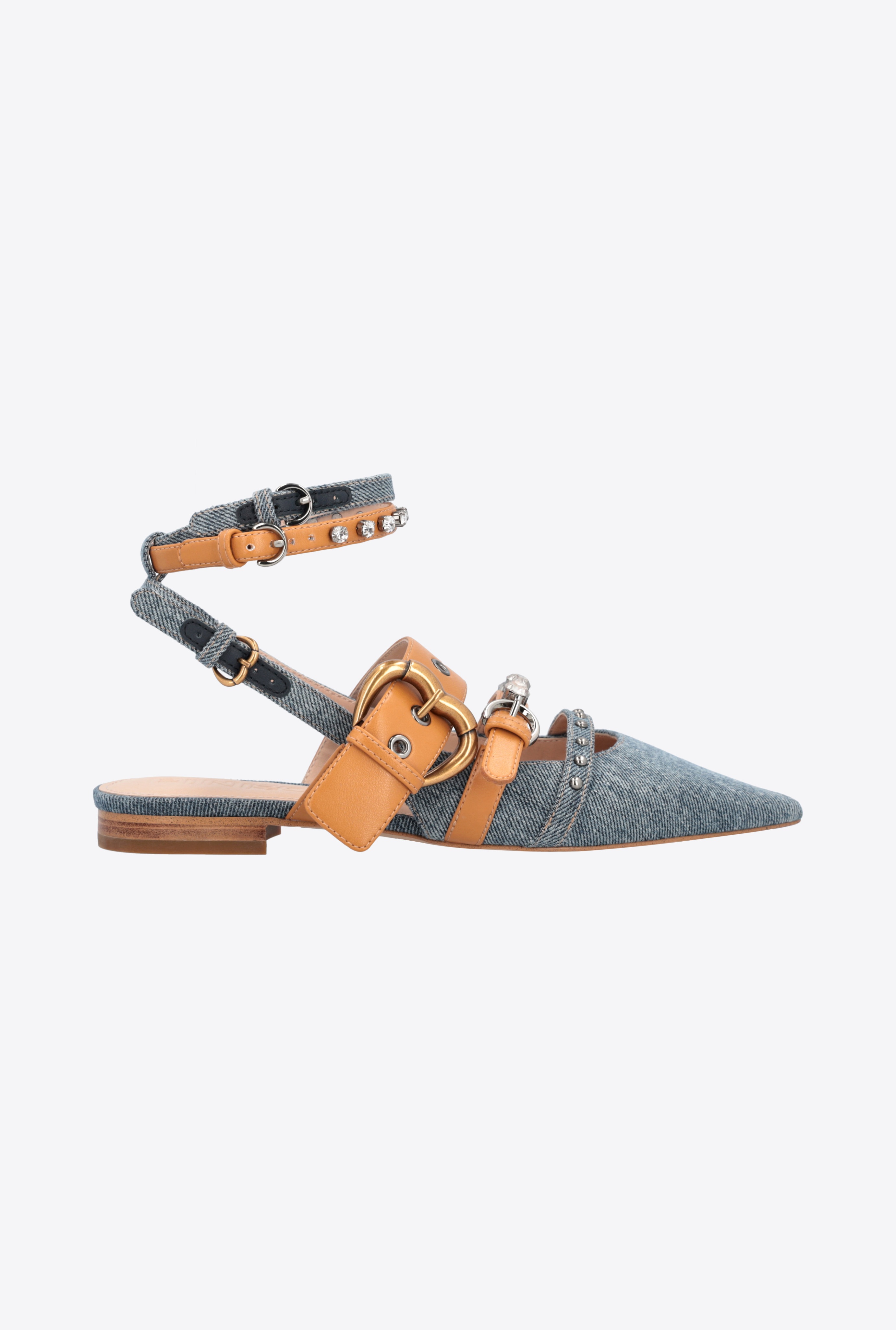 DENIM POINTED-TOE SLINGBACKS WITH RHINESTONES