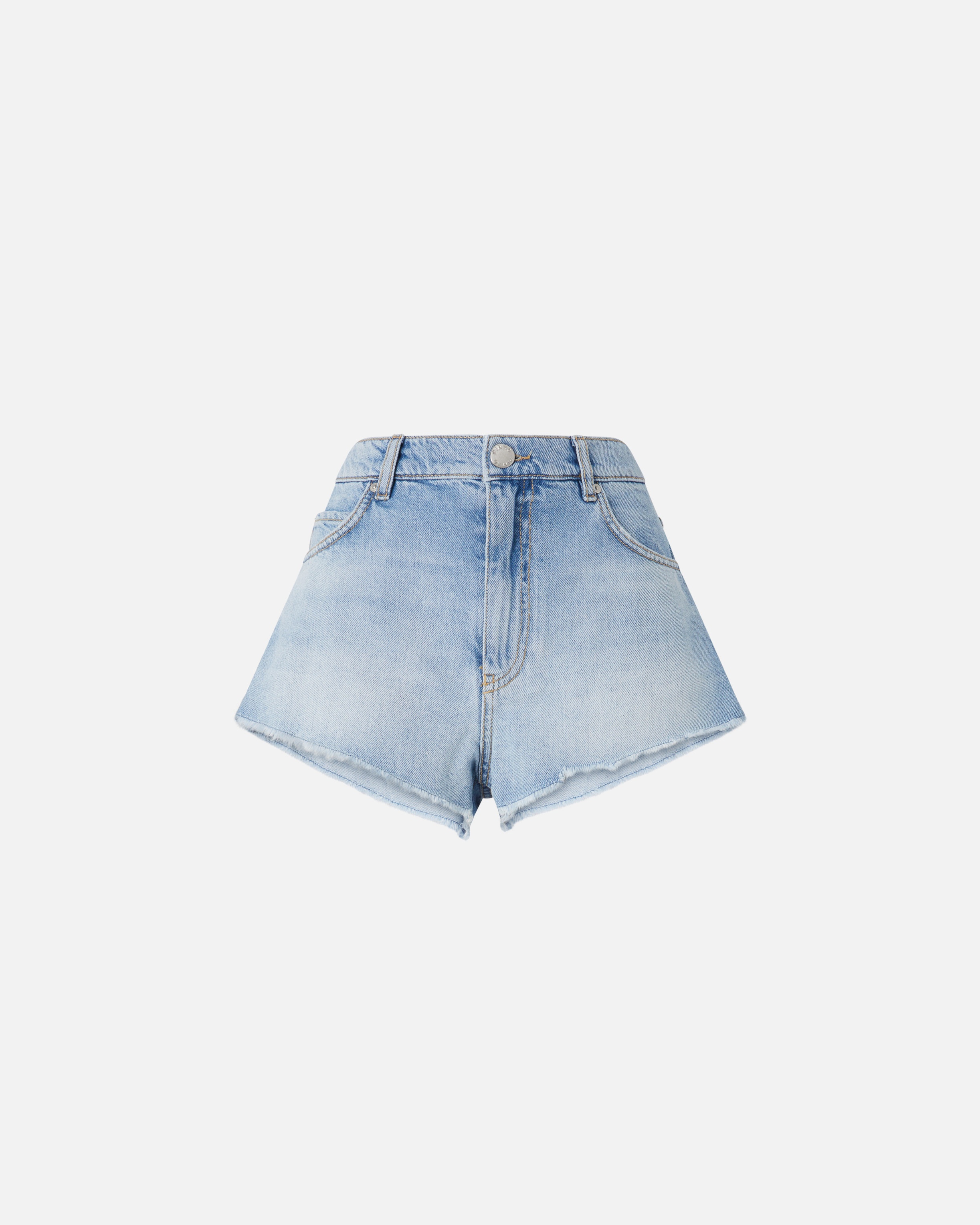 SERENGETI SHORTS − 104593A2BOPJE Five-pocket denim shorts in golden beach cotton denim, characterized by a light wash and vintage inspiration. The fitted leg of the shorts is finished with a raw-cut hem, with a slight fraying that recalls summer atmospheres on the beach and walks by the sea. One of the two back pockets is personalized with Love Birds embroidery. Covered zip closure and metal tack button. COMPOSITION Outside Fabric: COTTON 82% LYOCELL 18% - Lining: POLYESTER 65% COTTON 35%