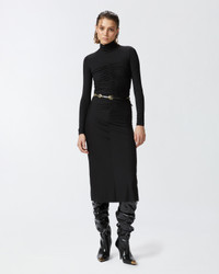 DIMITROVA DRESS − 104502A29BZ99 Midi dress in soft, particularly warm stretch modal jersey that feels pleasant to the touch and on the skin. This slim-fitting dress, complete with high collar, long sleeves and an invisible front zip, is made unique by the gathering and draping on both the front and back. COMPOSITION Outside Fabric: MODAL 95% ELASTANE 5% - Lining: POLYAMIDE 90% POLYAMMIDE 90% ELASTANE 10%