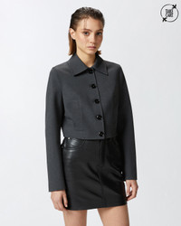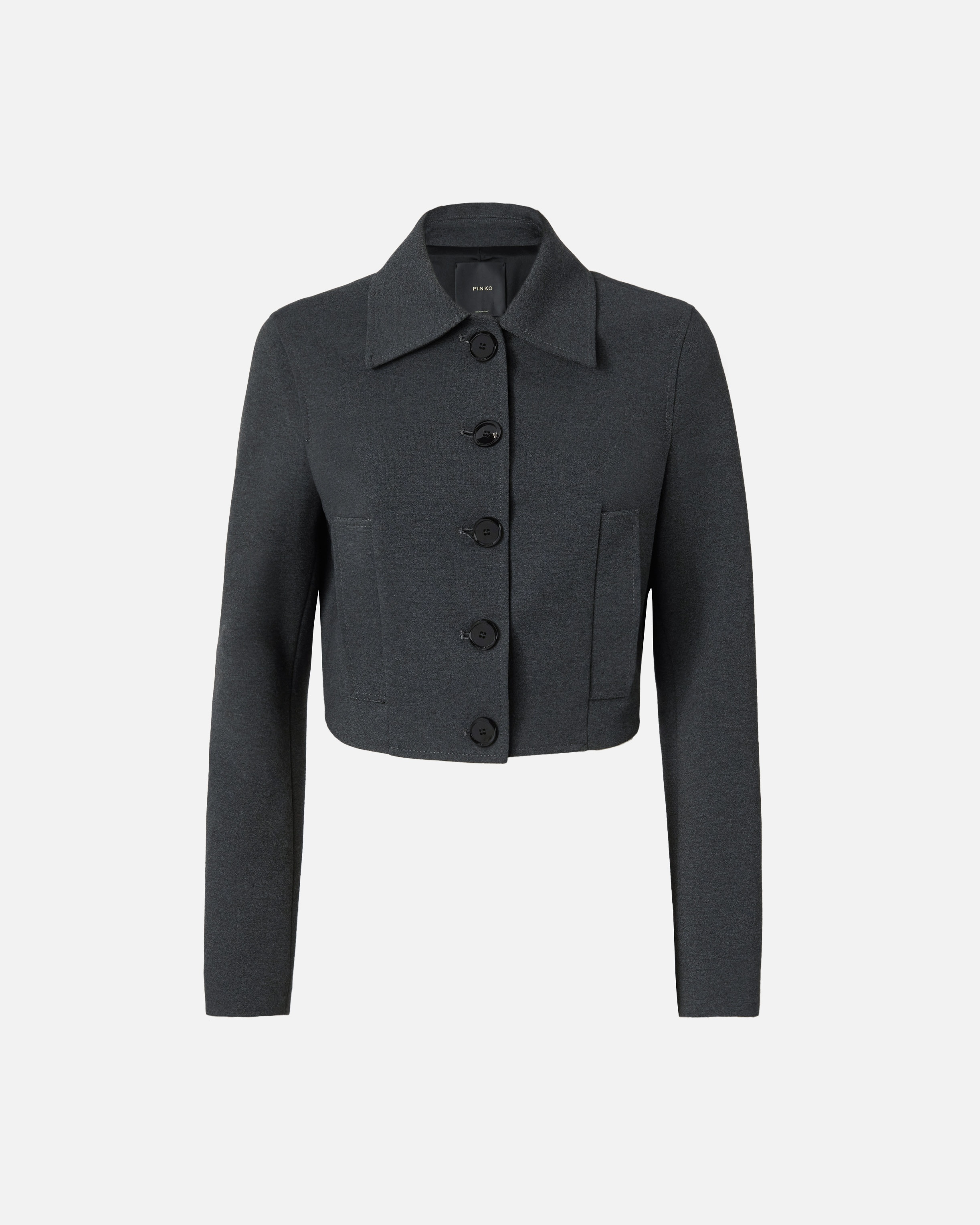 DOCCIA JACKET − 104221A15MI76 Short-cut single-breasted jacket in a technical stretch viscose fabric worked in a fabric stitch. The clean silhouette is completed by a shirt collar, round sleeves and vertical welt pockets on the hips. The jacket is lined. Front button fastening. The main fabric is made with 67% viscose from responsibly managed forests. COMPOSITION Outside Fabric: VISCOSE 67% POLYAMMIDE 28% POLYAMIDE 28% ELASTANE 5% - Lining: ACETATE 70% POLYESTER 30%