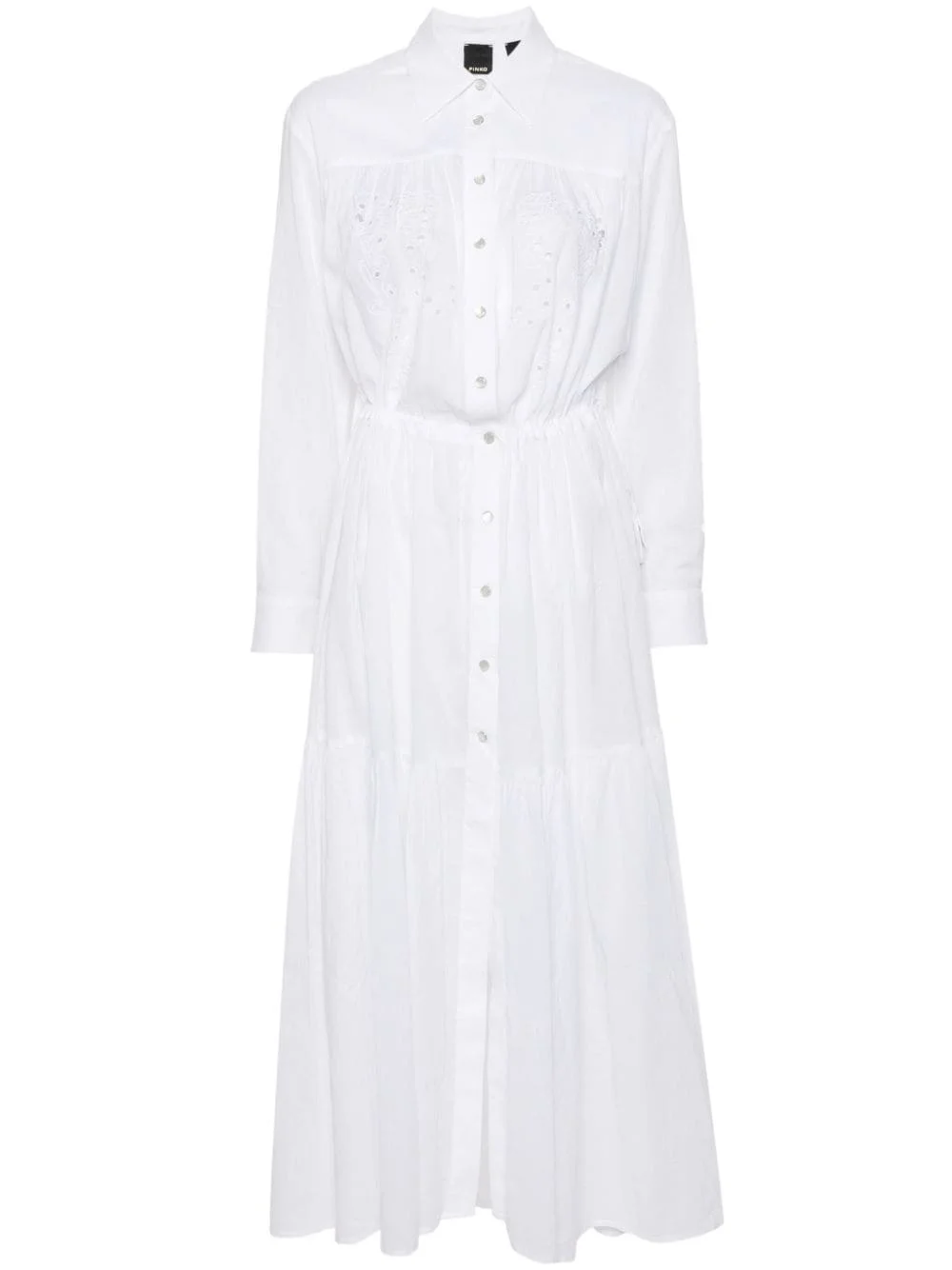Dolce Vita maxi shirt dress Highlights - White - Cotton - Poplin texture - Broderie-anglaise detailing - Gathered detailing - Panelled design - Pleat detailing - Classic collar - Long sleeves with press-stud fastening cuffs - Drawstring fastening waist - Front press-stud fastening - Long length - Flared hem - Unlined Imported Composition Polyester 100%, Cotton 100% SIZE & FIT Model measurements Height 5 ft 11 in(1.8 m) Bust/Chest 32.67 in(83 cm) Hips 36.22 in(92 cm) Waist 24.4 in(62 cm) FittingInformation Designed to be unstructured, offering a loose fit throughout The adjustable drawstring means that you can adjust this piece’s fit to suit your comfort and preference Made from a midweight non-stretch fabric This piece fits true to size – take your usual size Washing instructions Machine Wash