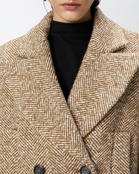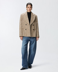 SHORT DOUBLE-BREASTED COAT PEA COAT WITH HERRINGBONE