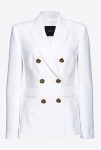 Blazer in stretch viscose crepe. Classic-style piece with lapel collar, long sleeves, small welt pocket and flap pockets at the sides. Lined. Double-breasted fastening with metal buttons. COMPOSITION Outside Fabric: POLYESTER 98% ELASTANE 2% - Lining: ACETATE 64% POLYESTER 36%