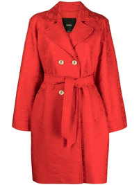 double-breasted coat Led by the label’s penchant for refined outerwear, this red coat from PINKO features a classic double-breasted silhouette. Highlighted by a belted waist, it’s detailed with a tonal jacquard monogram throughout. Made in Italy Composition Outer: Polyester 54%, Cotton 46% Lining: Polyester 100% SIZE & FIT Model measurements Height 5 ft 10 in(1.77 m) Bust/Chest 32.67 in(83 cm) Hips 35.43 in(90 cm) Waist 23.62 in(60 cm) FittingInformation This piece fits true to size. We recommend you get your regular size Cut for a loose fit. Comes with an adjustable belt for a flexible fit at the waist Made with a mid-weight non-stretch fabric