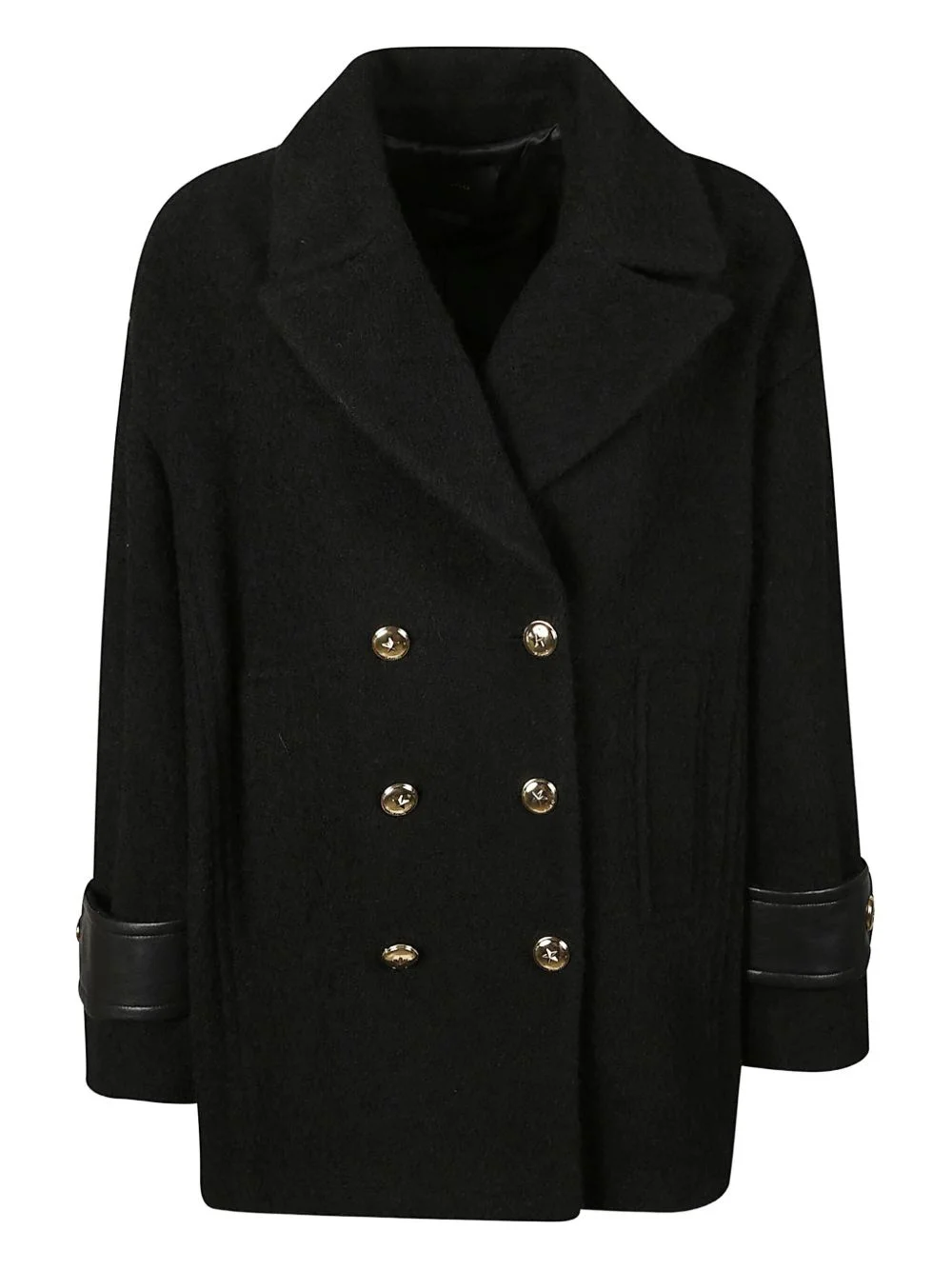 double-breasted cuff coat Highlights - Black - Double-breasted - Gold-tone buttons - Cuff detail Imported Composition Outer: Polyurethane 100%, Polyester 43%, Wool 40%, Acrylic 17% Lining: Polyester 50%, Viscose 50% Washing instructions Read Manufacturer Guidelines