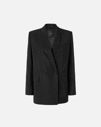 DELEDDA JACKET − 104456A287Z99 Oversized blazer jacket in yarn-dyed stretch viscose-blend fabric embellished with rhinestones all over. This double-breasted, button-fastened garment is complete with a lapel collar, welt pockets and side pockets with flap. The structured shoulders help emphasise the oversized fit of the blazer, which, when worn with its matching trousers, gives the classic suit a special twist. COMPOSITION Outside Fabric: POLYESTER 92% VISCOSE 6% ELASTANE 2% - Lining: POLYESTER 55% VISCOSE 45% - : Glass 100%