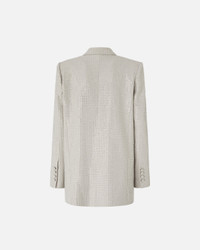 DELEDDA JACKET − 104456A287I30 Women's blazer in yarn-dyed fabric with a compact feel, entirely covered with heat-sealed micro rhinestones that give uniform brightness; slightly oversized line with a structured shoulder and shawl lapel, double-breasted closure with two tone-on-tone buttons, a welt pocket on the chest, and applied flap pockets; long sleeves with a three-button functional cuff, a central back slit for greater ease of movement, and a lined interior that slides perfectly over layers; clean topstitching and a straight hand-finished hem complete a statement outerwear piece, ideal for transforming simple denim into a high-impact evening look. COMPOSITION Outside Fabric: POLYESTER 92% VISCOSE 6% ELASTANE 2% - Lining: POLYESTER 55% VISCOSE 45% - : Glass 100%