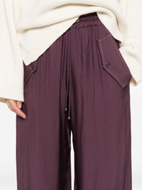 drawstring-fastening trousers Highlights - Dark purple - Drawstring fastening - Two front pockets - Elasticated waistband - Tonal stitching Imported Composition Viscose 100% SIZE & FIT Model measurements Height 5 ft 9 in(1.76 m) Bust/Chest 31.49 in(80 cm) Hips 35.43 in(90 cm) Waist 23.62 in(60 cm) Washing instructions Read Manufacturer Guidelines