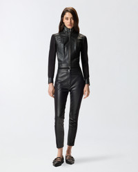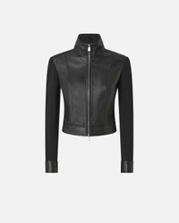 GRANETTI JACKET − 105367Y75KZ99 Dual-fabric biker jacket, distinguished by the combination of soft leather and neoprene for a comfortable end result that goes well with the fitted line and fully expresses PINKO’s DNA. The design is completed by a high collar, long sleeves with zip on the cuffs and buttoned straps on the rear hem. Two-way metal zip fastening on the front. COMPOSITION Leather: SHEEP LEATHER 100% SHEEPSKIN LEATHER 100% - Outside Fabric: VISCOSE 65% POLYAMMIDE 30% POLYAMIDE 30% ELASTANE 5% - Body lining: POLYESTER 97% ELASTANE 3% - Sleeve lining: COTTON 100%