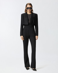 TROUSER STYLE − 104870A2CNZ99 Women's high-waisted trousers with an elegant line made of technical wool with satin details for the high waistband. The tapered line of the trousers follows the shapes in a fluid way and is completed by a central back slit at the bottom of the leg, a detail designed to highlight the heels that you will wear together with your look. COMPOSITION 1° Outside Fabric: POLYESTER 55% WOOL 45% - 2° Outside Fabric: ACETATE 91% POLYESTER 9% - Lining: COTTON 100%