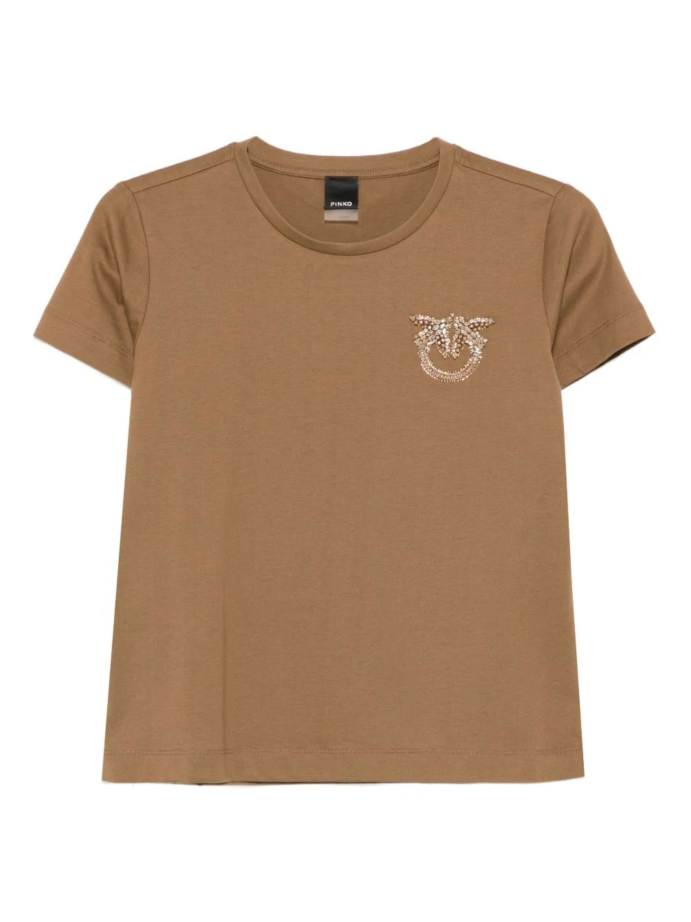 embellished-logo T-shirt Highlights - Brown - Short sleeves - Round neck - Logo embellishment Imported Composition glass 100%, PVC 100%, Cotton 100%, Acetate 100% SIZE & FIT Model measurements Height 5 ft 9 in(1.75 m) Bust/Chest 34.64 in(88 cm) Hips 36.61 in(93 cm) Waist 26.37 in(67 cm) Washing instructions Hand Wash