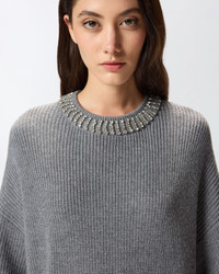 KNIT DRESS WITH RHINESTONE-DETAILED NECK
