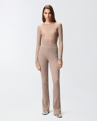 PICO KNITWEAR − 105398A2PMD23 Crew-neck sweater made from a semi-sheer wool blend: a lightweight and soft yarn that is almost impalpable, which helps create a sensual and striking look. The design is embellished with micro-sequins inserted in the thread and manages to be shiny and understated and extremely comfortable to wear. The piece has undergone finishing tests to minimise the possible formation of pilling, ensuring greater fabric softness and durability. The final touch is given by the label with PINKO lettering logo on the back. COMPOSITION Outer Yarn: WOOL 98% POLYESTER 2%