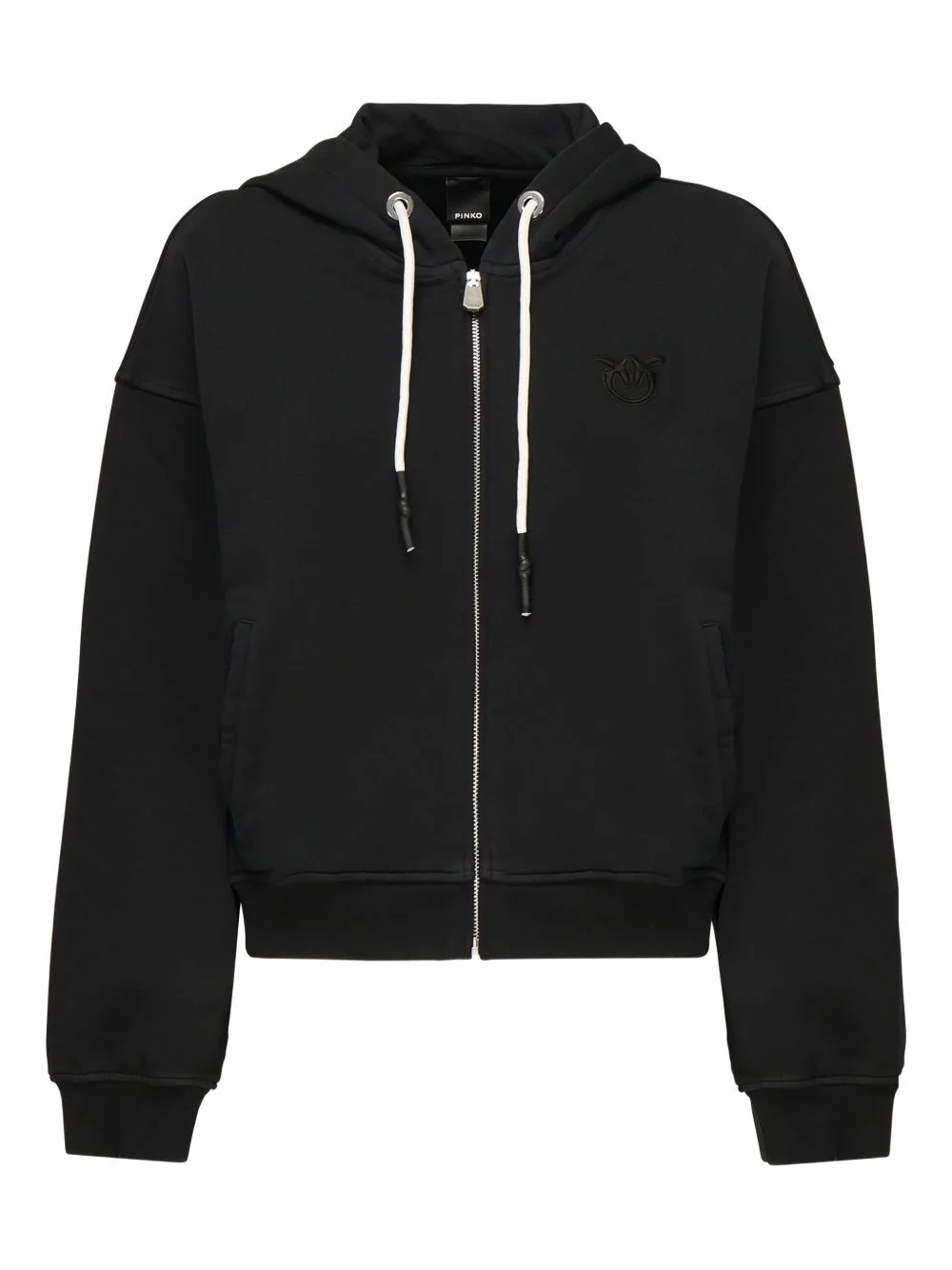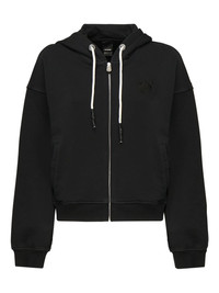embroidered logo zip-up hoodie Highlights - Black - Hooded neckline - Zip fastening - Long sleeves - Embroidered logo Imported Composition Cotton 100%