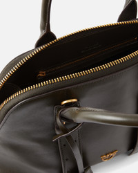 105906A0QO-K35Q Escape Bag medium bowling handbag made entirely from soft leather. Featuring an adjustable and detachable leather shoulder strap and double handle so it can be carried by hand or on the shoulder, the bag is very versatile and practical. The model features a functional padlock that opens and closes with a key contained in the matching charm, while the finishing touch is provided by the small Love Birds logo plaque symbolising the brand's singular style. The zip fastening at the top opens to reveal a cotton-lined interior with a single zipped slip pocket. Activate your PINKO bag: verify the authenticity of your product and access a personalised experience by scanning the Love Birds embroidery on the back of the bag with your smartphone! COMPOSITION Leather: COWHIDE 100% BOVINE SKIN 100% - Outside Fabric: POLYURETHANE 100% - Lining: COTTON 100% MEASURES W: 1.13 g H: 23.0 cm W: 13.0 cm L: 30.0 cm