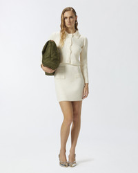 EXOTIC SKIRT − 104362A27JZ13 Slim-fitting mini skirt in knit wool-blend fabric worked with a special type of stitch that creates a geometric pattern all over. Complete with a contrasting inlaid logo on the back and two buttoned flaps that look like pockets on the front, this skirt is perfect as part of a head-to-toe look with the matching jacket or as part of a highly feminine and original daytime outfit. COMPOSITION 1° Outside Fabric: ACRYLIC 62% POLYESTER 28% WOOL 10% - 2° Outside Fabric: VISCOSE 100%