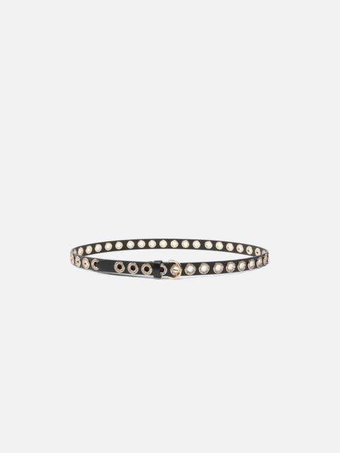 LEATHER BELT WITH JEWEL EYELETS, 2CM