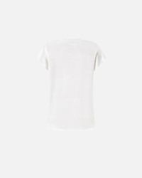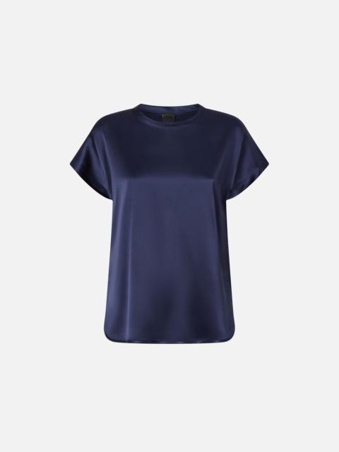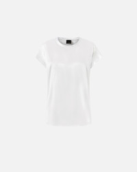 null ā 100100A2JRZ05 Women's fluid blouse made of lightweight stretch silk-blend satin, which embellishes any look thanks to its shiny and refined texture. The soft line of the top is completed by a round neckline and short cap sleeves, an original touch that makes it one of a kind. Elegant, versatile and always perfect, this feminine blouse knows how to accompany you on all occasions, from dynamic days when you wear it with a pair of jeans, to special evenings where it becomes the protagonist of expertly combined outfits. COMPOSITION Outside Fabric: SILK 91% ELASTANE 9%