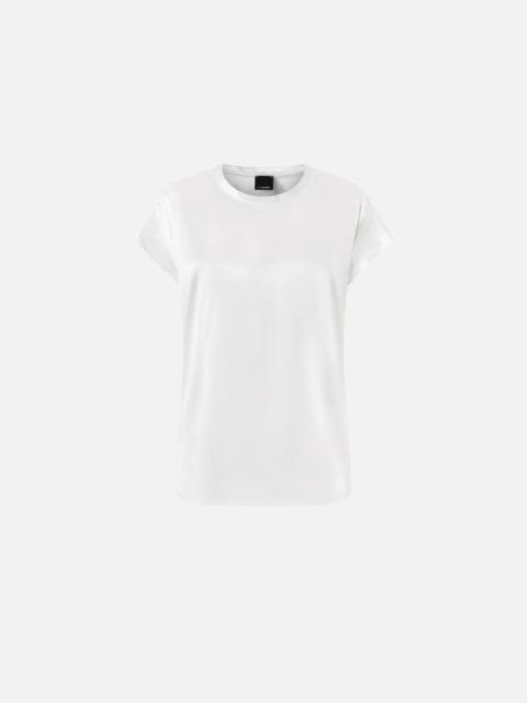 null − 100100A2JRZ05 Women's fluid blouse made of lightweight stretch silk-blend satin, which embellishes any look thanks to its shiny and refined texture. The soft line of the top is completed by a round neckline and short cap sleeves, an original touch that makes it one of a kind. Elegant, versatile and always perfect, this feminine blouse knows how to accompany you on all occasions, from dynamic days when you wear it with a pair of jeans, to special evenings where it becomes the protagonist of expertly combined outfits. COMPOSITION Outside Fabric: SILK 91% ELASTANE 9%