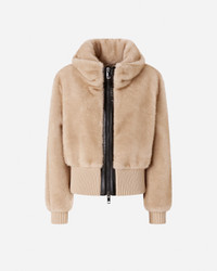 BAGELS BOMBER − 105399A2PIC60 Short bomber jacket featuring a wraparound raised collar and a comfortable rib-knit hem and cuffs. This piece is made from soft Aspen fabric with a fur effect, which is particularly pleasant to the touch. The attention to detail typical of PINKO creations can also be seen in the soft nappa leather trims that outline the two-way zip fastening on the front. Lined model. Face the coldest temperatures with this garment that is ready to give you a soft hug. COMPOSITION 1° Outside Fabric: POLYESTER 100% - 2° Outside Fabric: POLYESTER 100% - Accessory Yarn: POLYESTER 70% WOOL 30% - coating: POLYURETHANE 100% - Lining: POLYESTER 100%
