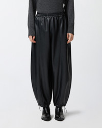 SPEZIA TROUSERS − 105386A2PGZ99 Women's long trousers featuring a balloon silhouette in faux leather fabric, with a personalized smocked elastic waistband and inset pockets on the hips. The wide, rounded leg is completed by a drawstring at the bottom of the leg to collect volume. With these trousers it is very easy to build an everyday outfit with a special, contemporary and trendy touch. COMPOSITION Outside Fabric: POLYESTER 100% - Lining: POLYESTER 100% - coating: POLYURETHANE 100%
