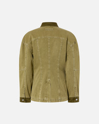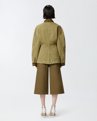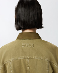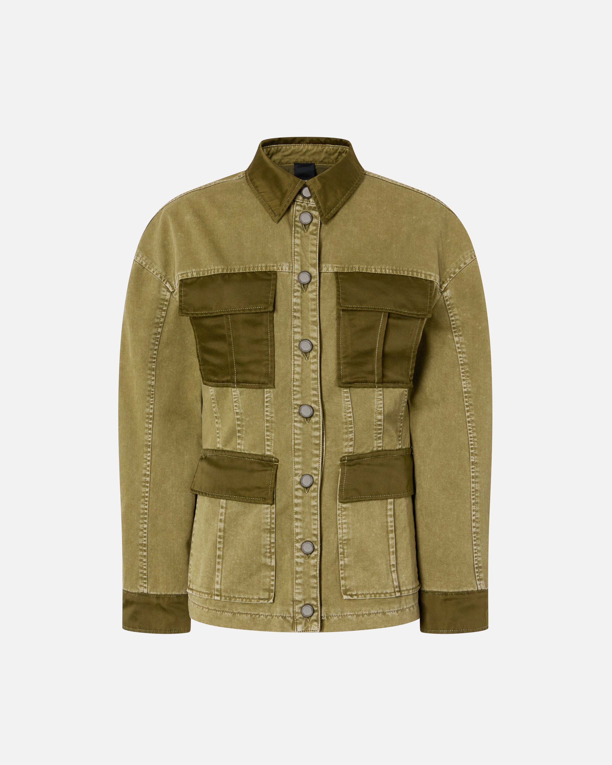 FRECCIA FIELD JACKET − 104895A2GCV49 Military-inspired field jacket style outerwear in cotton gabardine with breast pockets, shirt collar and cuffs in contrasting technical fabric, with a slightly shiny texture. The jacket is characterized by a particular fitted silhouette, more oversized at the top and narrow on the hips. Metal button closure on the front. Functional and perfect for every day, this field jacket completes any outfit in style. COMPOSITION 1° Outside Fabric: COTTON 100% - 2° Outside Fabric: POLYESTER 100% - Lining: COTTON 100%