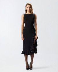 FLIPPER DRESS − 105781A2Q2Z99 Long sleeveless dress with a deep neckline on the back, made from stretch viscose fabric, which translates into an optimal fit. The material has been designed to perfectly adhere to the lines of the body, enhancing the silhouette in a natural and defined way. Laser-etched spiral flounces paired with satin create shiny/matte contrast that enhances the texture of the fabric. The mix of shapes adds movement to this refined look, without losing a structured and feminine final effect. COMPOSITION 1° Outside Fabric: VISCOSE 98% ELASTANE 2% - 2° Outside Fabric: POLYESTER 100% - Lining: ACETATE 67% POLYESTER 33%
