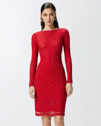 AARON DRESS ā 105227A2M5RA1 Women's knee-length dress with a slim fit in refined stretch lace. The long-sleeved dress features a straight neckline in front and a wide round neckline at the back with an adjustable double strap, where the back is left uncovered. The straps hold the two sides of the neckline together, ensuring a perfect fit all day long. The lace dress is lined to contrast the transparency of the lace, and allows you to wear this garment even on the most special occasions where the dress code requires elegance and refinement. Pair a pair of heels with this dress to elevate your special outfit. COMPOSITION Outside Fabric: POLYAMMIDE 86% POLYAMIDE 86% ELASTANE 14% - Lining: POLYAMMIDE 100% POLYAMIDE 100% - Body lining: POLYAMIDE 90% POLYAMMIDE 90% ELASTANE 10%