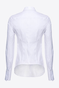 Shirt in stretch cotton poplin fabric with a fitted waist. Classic collar, long sleeves with buttoned cuffs, and embroidered logo detail on the front. Front button fastening. COMPOSITION Outside Fabric: COTTON 77% POLYAMIDE 20% POLYAMMIDE 20% ELASTANE 3%