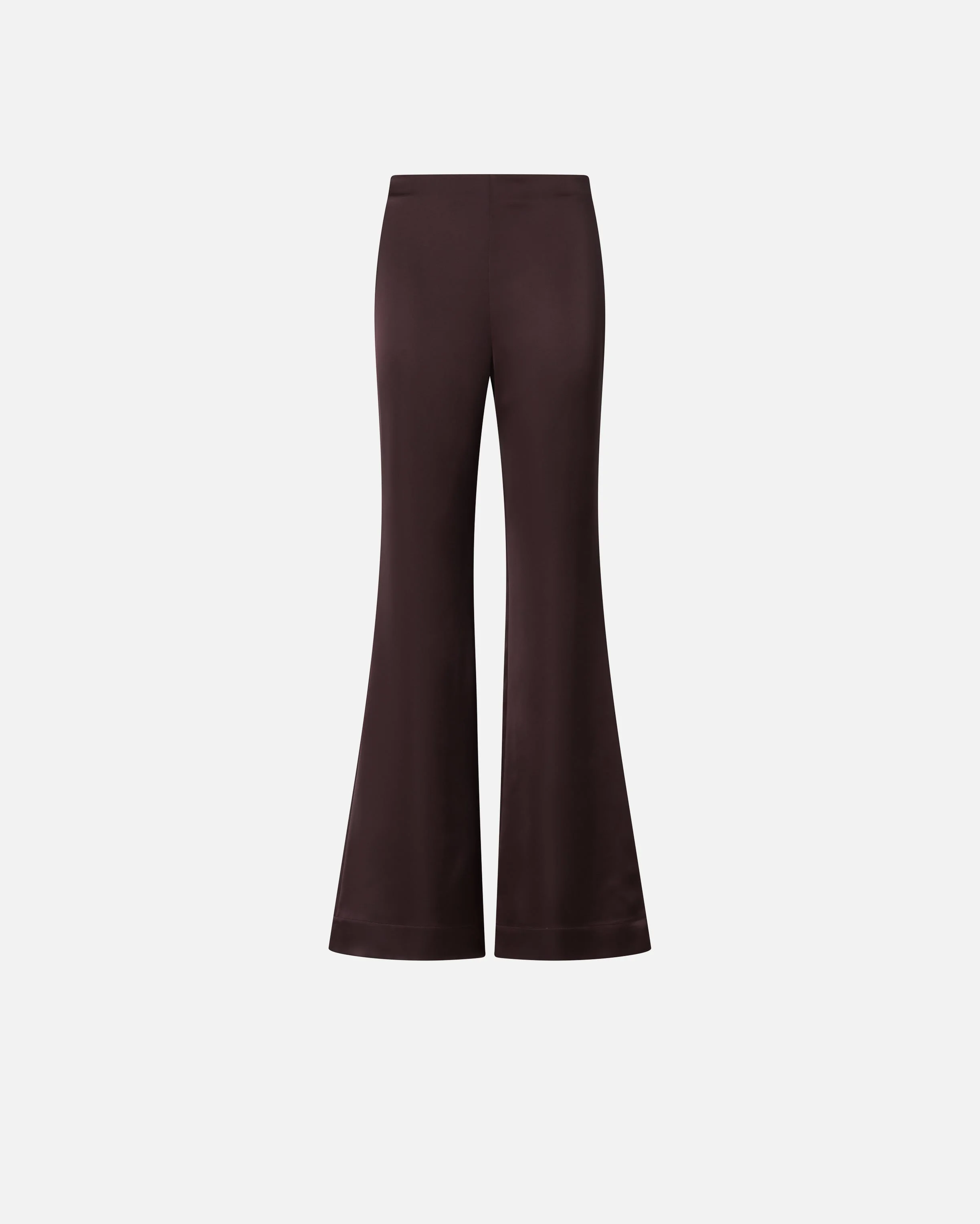 106434A361-R57 Trousers made of stretch satin with a particularly shiny and silky effect, a fabric capable of combining comfort and sophistication. The flared cut enhances the figure, while the side zip integrates discreetly, keeping the look clean and minimalist. A versatile style, ideal for formal looks, elegant evenings or to elevate a casual outfit with a bold, glamorous touch. - PINOLO TROUSERS COMPOSITION Outside Fabric: POLYESTER 96% ELASTANE 4% MEASURES W: 0.38 g