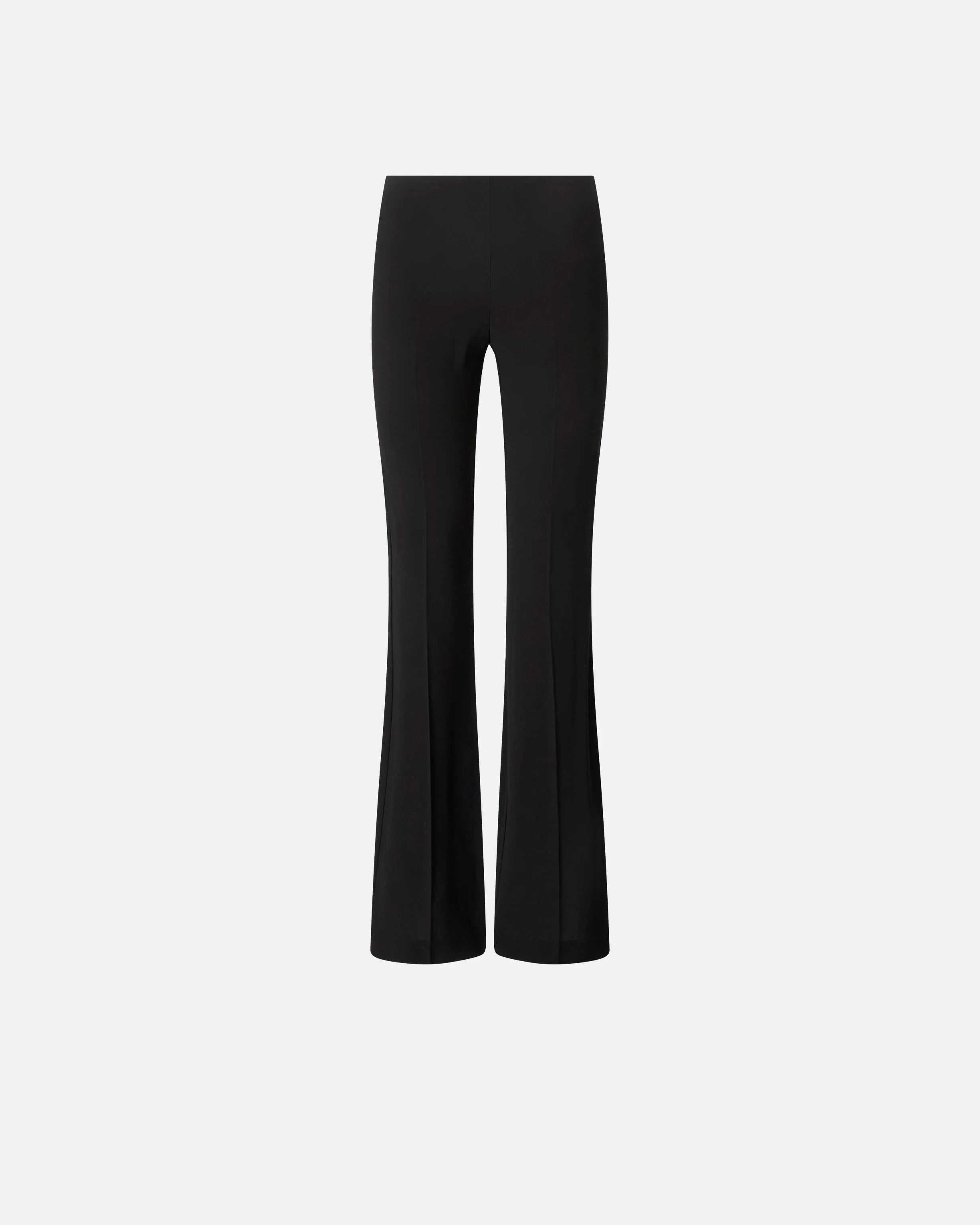 106445A2Q2-Z99 Trousers made of stretch viscose, an iconic fabric that recalls the classic cady, characterised by a soft and enveloping feel that glides naturally over the body, defining the silhouette with elegance and providing a flawless fit. With a flared cut that enhances the figure, the model features a refined central ironed pleat on the front and back, and a zip fastening at the back. Pair the trousers with the matching jacket for a refined suit to wear to ceremonies and special occasions. COMPOSITION Outside Fabric: VISCOSE 98% ELASTANE 2%