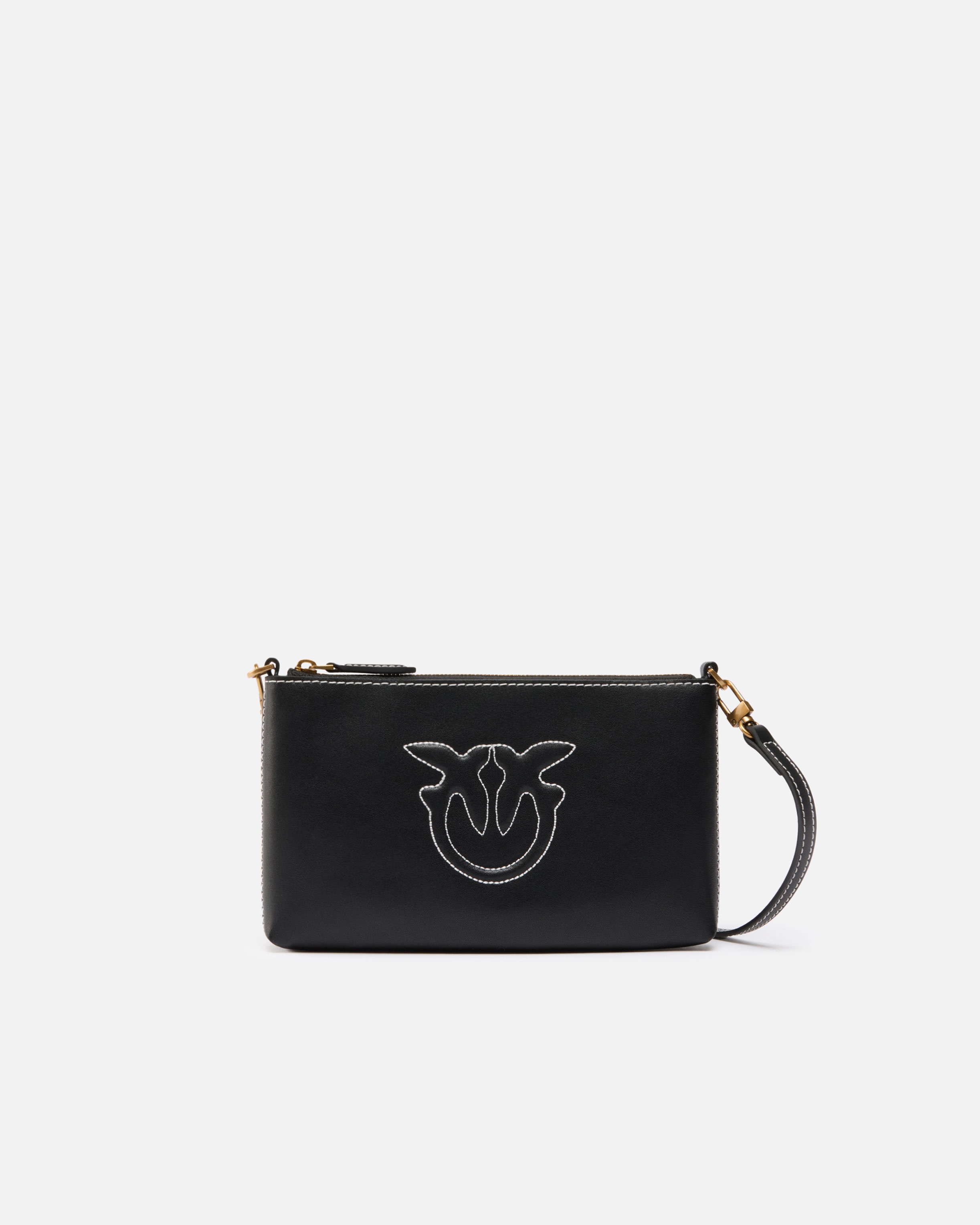 FLAT HORIZONTAL MINI − 104277A2ANZ99Q00001 Small Flat Bag with elongated rectangular shape, made from soft, silky leather and with custom Love Birds logo in which the iconic birds are raised and topstitched. This clutch features a removable, adjustable leather shoulder strap that, when removed via the small clasps, allows you to carry it by hand, making it the perfect versatile piece suitable for any occasion. Inside, the bag is lined with polycotton fabric and the zip fastening features a leather pull. Activate your PINKO bag: verify the authenticity of your product and access a personalised experience by scanning the Love Birds embroidery on the back of the bag with your smartphone! COMPOSITION Leather: COWHIDE 100% BOVINE SKIN 100% - Outside Fabric: POLYAMMIDE 50% POLYAMIDE 50% POLYURETHANE 50% - Lining: POLYESTER 100% MEASUREMENTS - Height: 12 cm - Width: 3 cm - Length: 20 cm